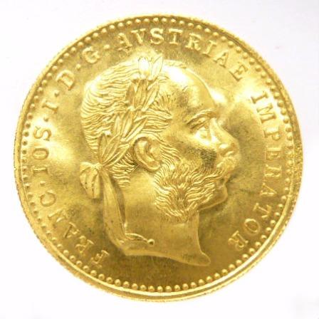 Ebenfalls nachgeprägt wird das österreichische 4-Dukaten-Stück mit entsprechend vierfachem Gewicht und Goldgehalt. Diese Münze mit belorbeertem Brustbild von Franz Joseph I. hat einen Durchmesser von 39,5 mm und ist daher aus empfindlich dünnem Goldblech.