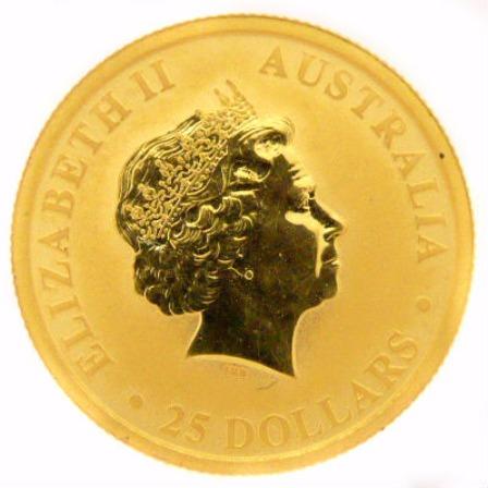1/4 oz. Australian Nugget/Känguru (div. Jahrgänge): Die Goldmünzen Australian Nugget und Australian Kangaroo werden seit 1986 von der Perth Mint in Australien geprägt und in die ganze Welt vertrieben. Anfangs wurde in Erinnerung an die australischen Goldgräberjahre das Motiv "Nugget" für die Rückseite verwendet, später das Motiv "Känguru". Es handelt sich hierbei um eine Feingoldmünze.