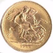 So wurden auch zum Beispiel die im Jahr 1917 letztmals noch als Umlaufmünze vorgesehenen in London geprägten Goldsovereigns zur Bezahlung von Rüstungsgütern an die USA gezahlt. Diese lagerten bis zu ihrer Einschmelzung zu Goldbarren im Jahre 1934 in Fort Knox. Münzen aus dieser Prägung, welche vereinzelt doch in Umlauf kamen, haben deshalb einen sehr hohen Sammlerwert; hier existieren allerdings sehr viele Fälschungen. Zum Beispiel wurde von den 1917 in den Kolonien geprägten Münzen das Münzzeichen entfernt. Dieses Münzzeichen wurde nur an den in den Kolonien geprägten Münzen angebracht, nicht an den Londoner Münzen.